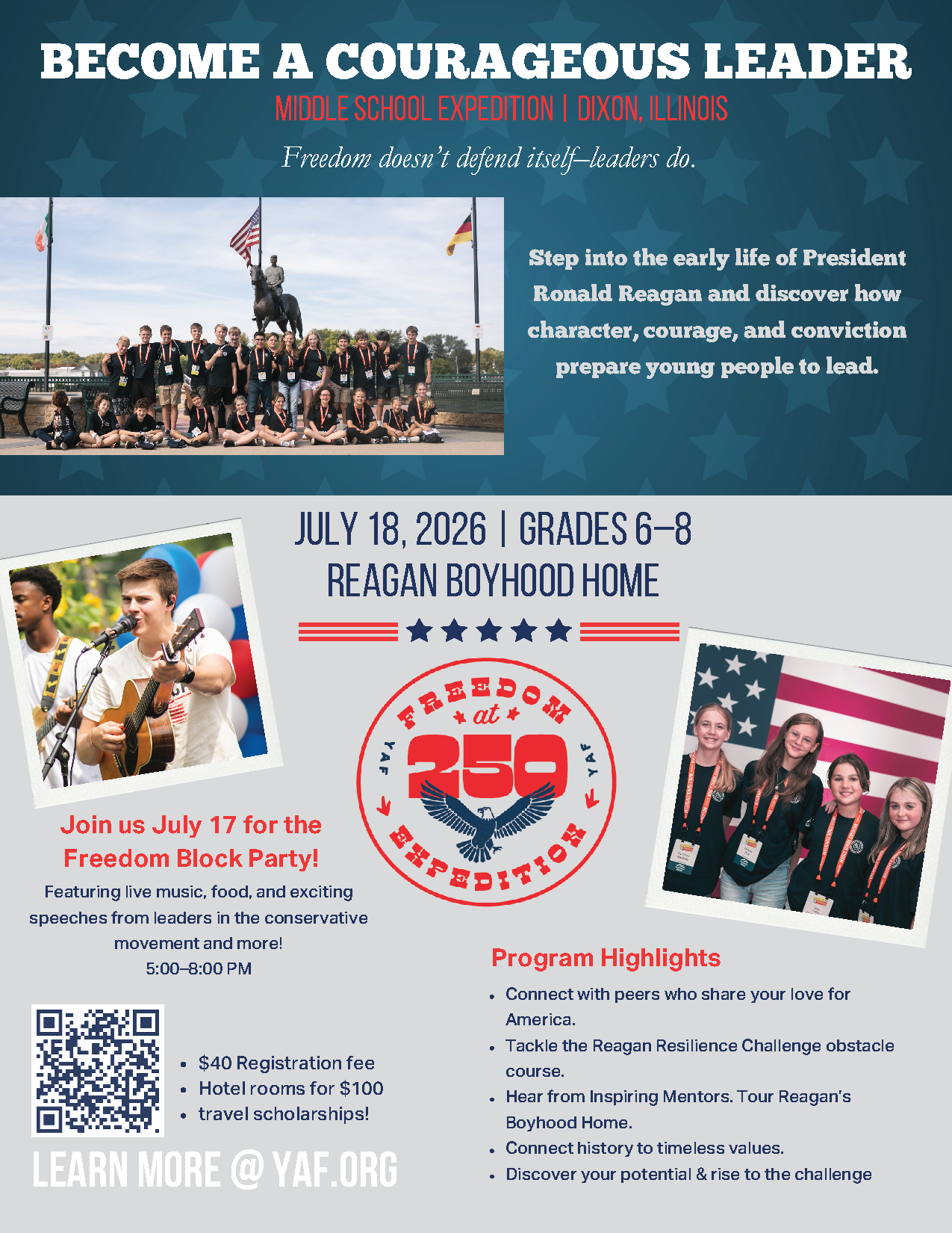 Ronald Reagan Boyhood Home and Young America’s Foundation will host several events in 2026 that will celebrate America 250!