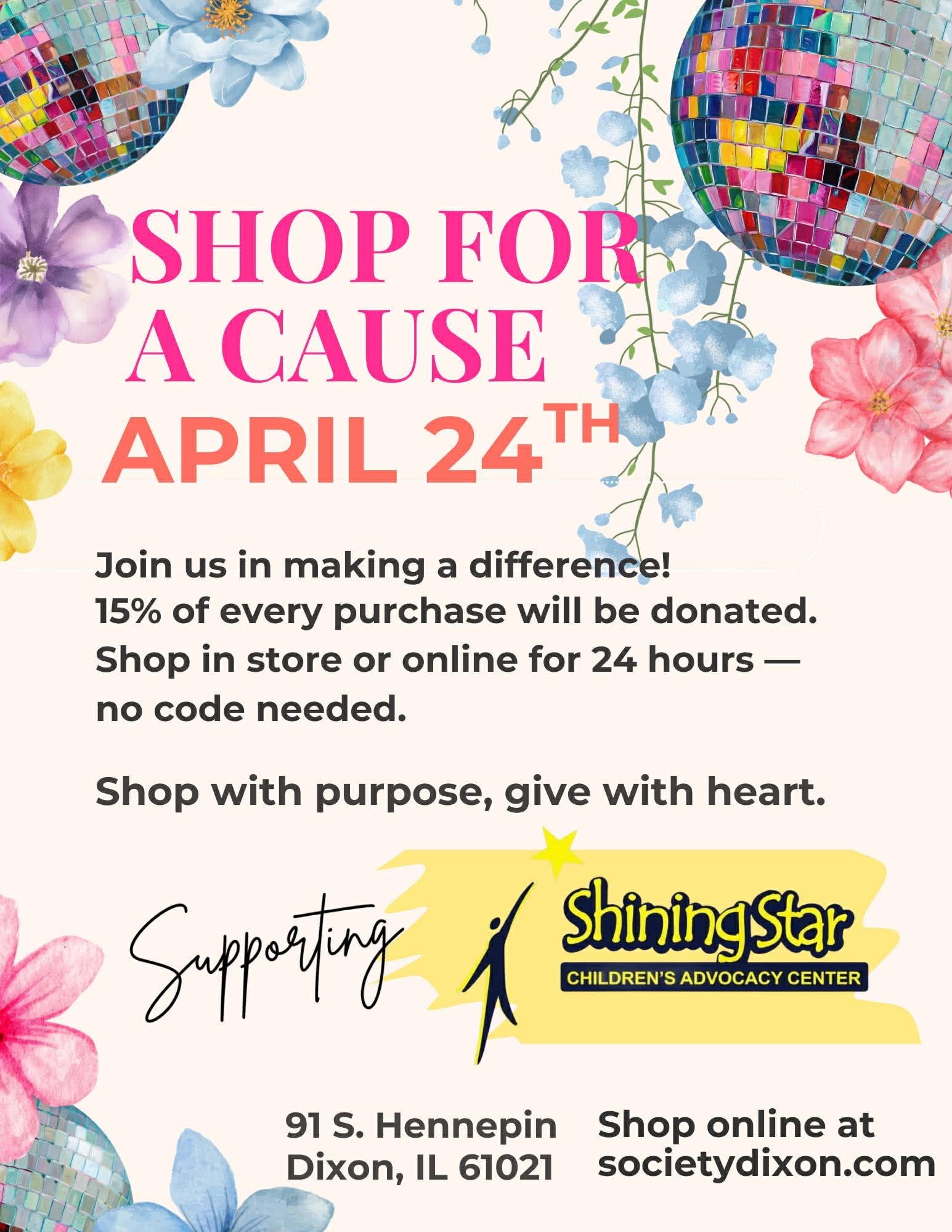 Join us for a special Shop for a Cause day at Society Boutique supporting Shining Star Children’s Advocacy Center.